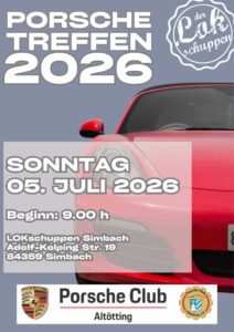 Simbach am Inn – Am 05. Juli 2026 ist es endlich wieder so weit: Sportwagen-Liebhaber aus ganz Deutschland und darüber hinaus treffen sich zum Porschetreffen im Lokschuppen in Simbach am Inn. Das Event verspricht einen Tag voller glänzender Porsche-Modelle, spannender Gespräche und einer beeindruckenden Atmosphäre, die alle Porsche-Enthusiasten begeistern wird.