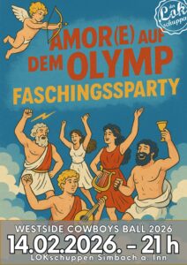 Am 14. Februar 2026 ist es wieder soweit: Die West Side Cowboys laden zum mit Spannung erwarteten WSC Ball ein. Die Veranstaltung findet in festlicher Atmosphäre statt und verspricht einen unvergesslichen Abend voller Musik, Tanz und Geselligkeit. Die West Side Cowboys freuen sich auf zahlreiche Gäste und einen Abend voller Freude, Lachen und unvergesslicher Erinnerungen.
